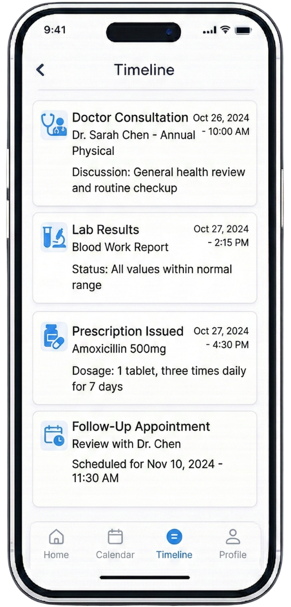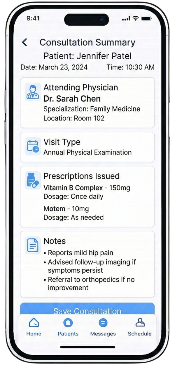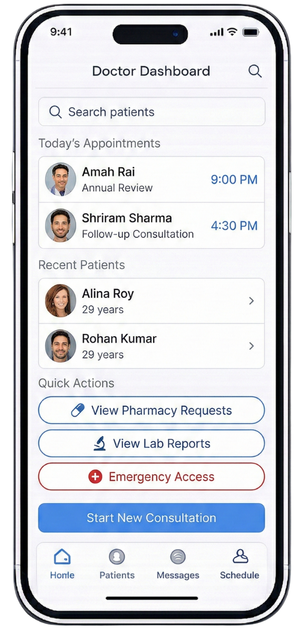 Mediiso is not a telemedicine platform. It is a healthcare continuity infrastructure layer built around a Universal Health Record ID (UHR-ID). Consultations, labs, prescriptions, diagnostics, and follow-ups are structured into one continuous patient timeline that follows individuals across providers.